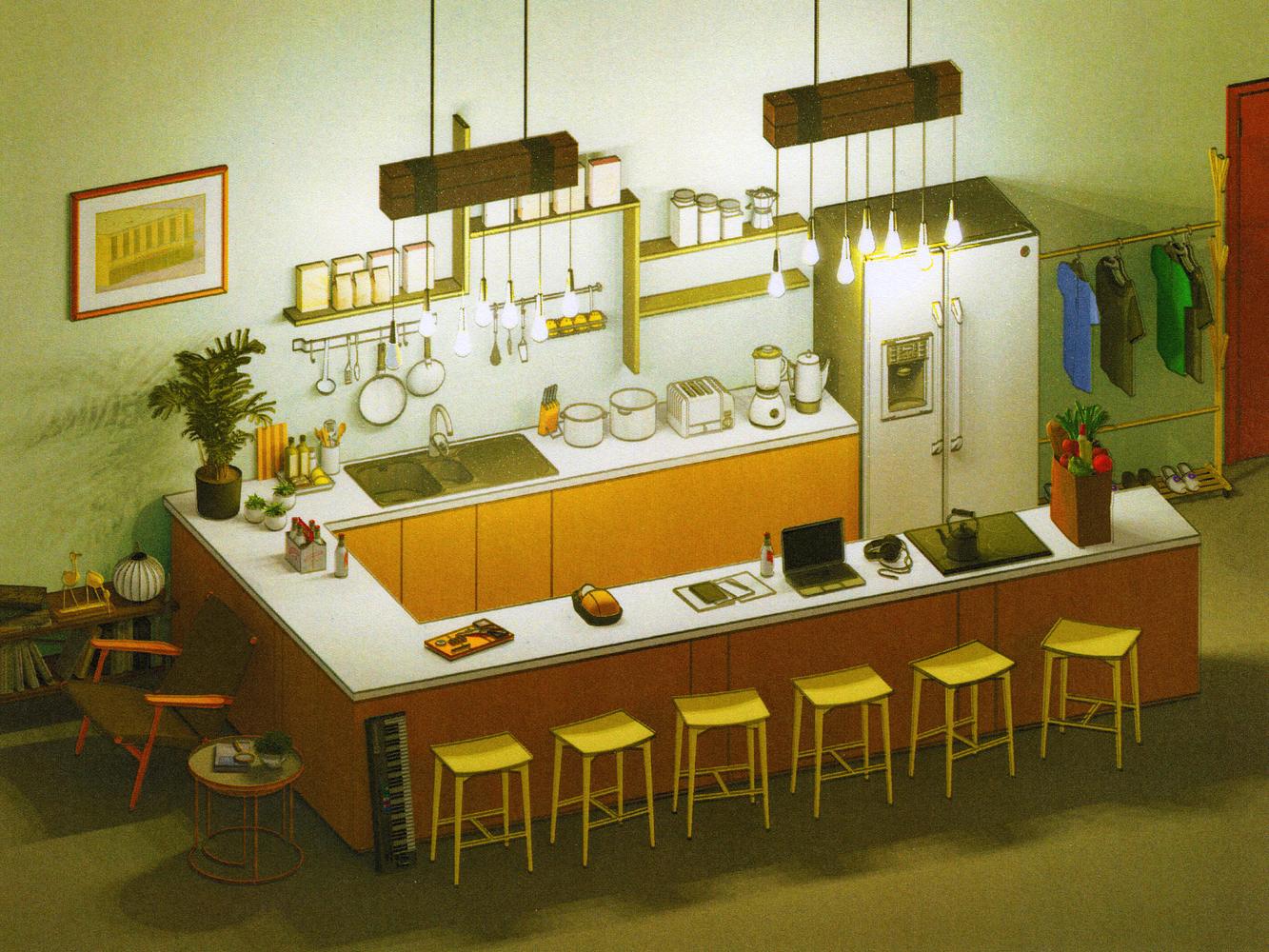 Kidfue is a project that blends architectural illustration and amused imaginations with warm, fuzzy analog textures. Justin Horstmann uses this medium as a source of creative joy, frequently reveling in the beauty of imperfection.